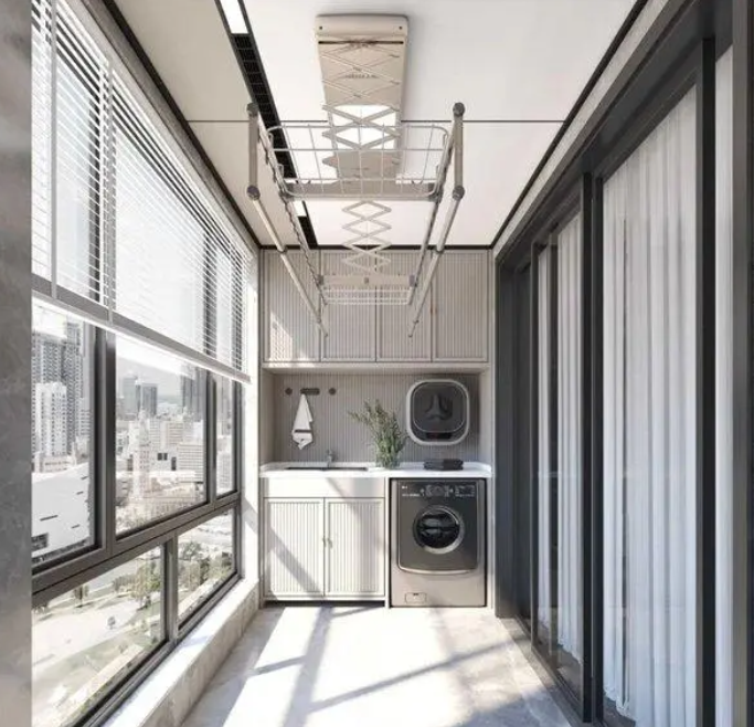 只有幾平方的陽臺用蜂窩大板,空間感釋放,大氣十足,好像多了好幾個平方。